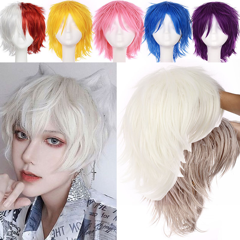 20 Colors Men 039 S Short Fluffy Straight Wigs Party Synthetic Cosplay With Bangs Ebay